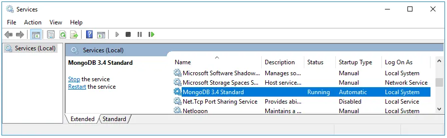 If done correctly, this will create the MongoDB service. It should look like this: