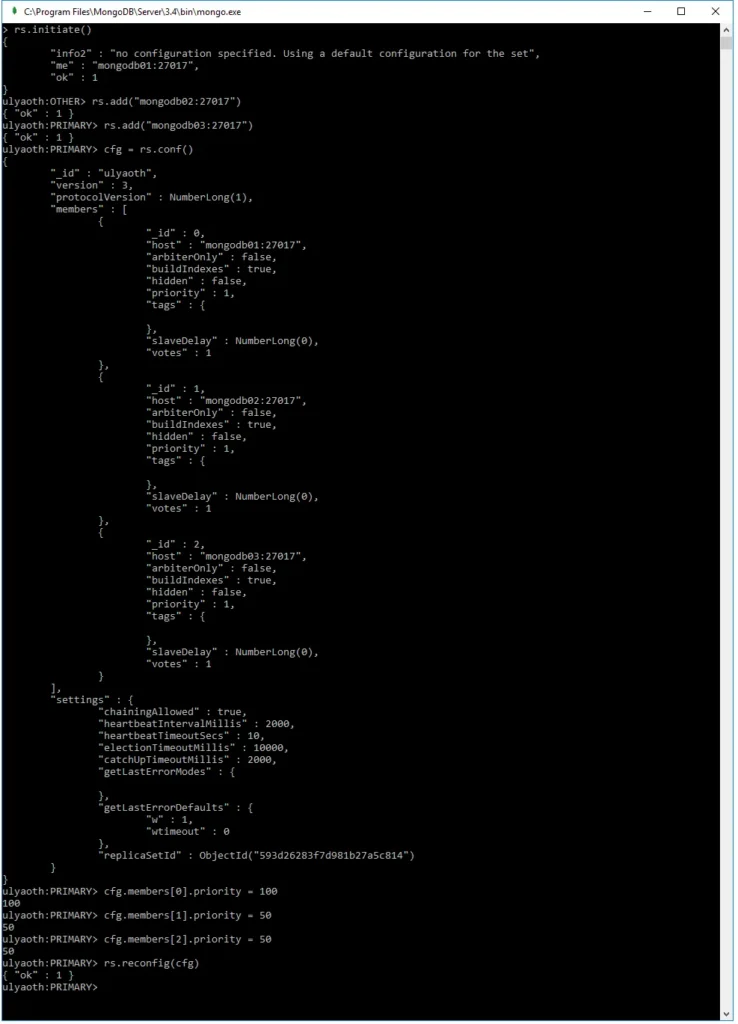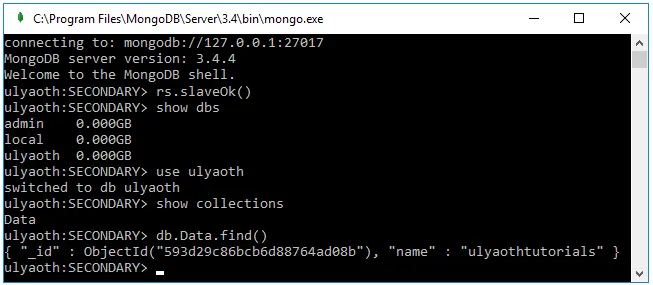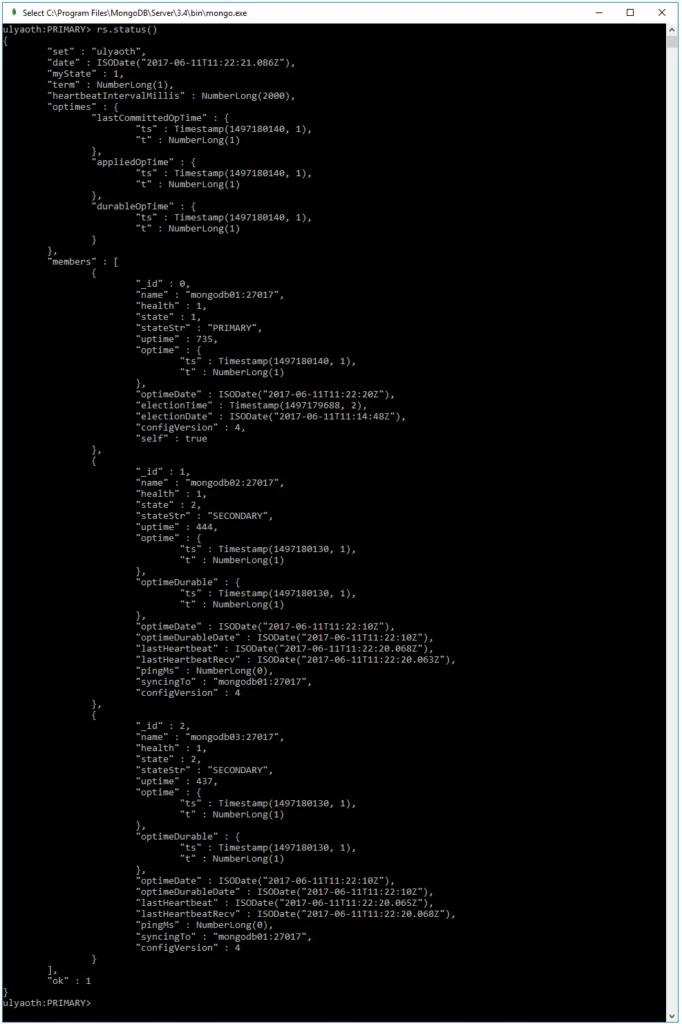 Congratulations! You have successfully installed MongoDB on Windows and set it up with replication. Now, let’s test that the replication works by creating a database on the primary (mongodb01).