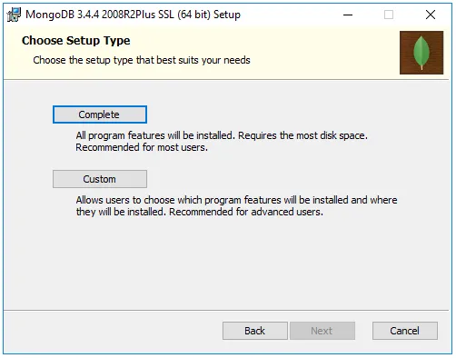 Select the “Complete” installation version as shown above.