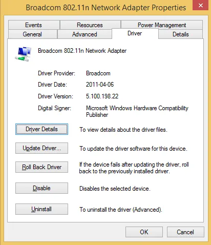 - Right-click on Broadcom 802.11n Network Adapter and select Properties.
