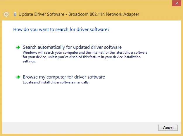 - Click Update Driver…. When the new window appears, select Browse my computer for driver software.