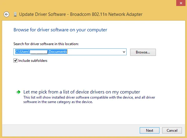 - On the next screen, select Let me pick from a list of device drivers on my computer.