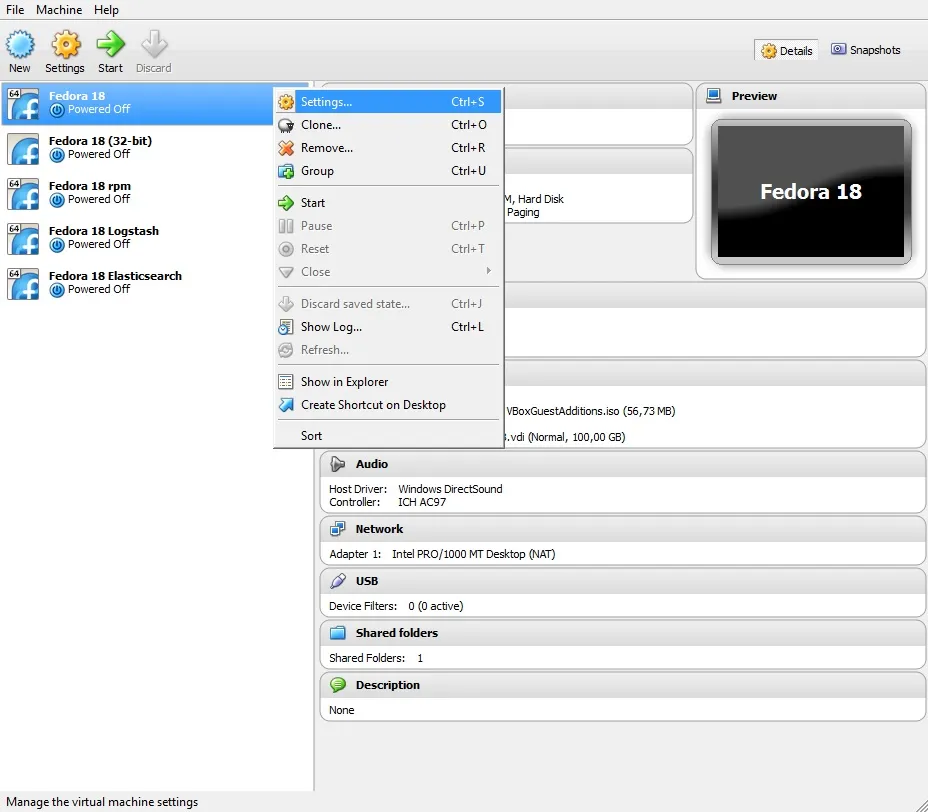 Right-click your virtual machine and select Settings, or select the machine and press Ctrl + S.