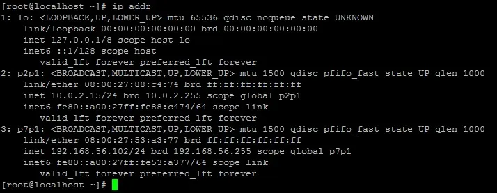 Find your interface name (e.g., p7p1 or eth1) using ip addr.